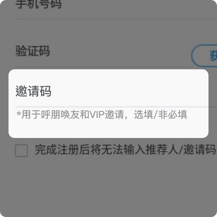 注册页栏位输入邀请码